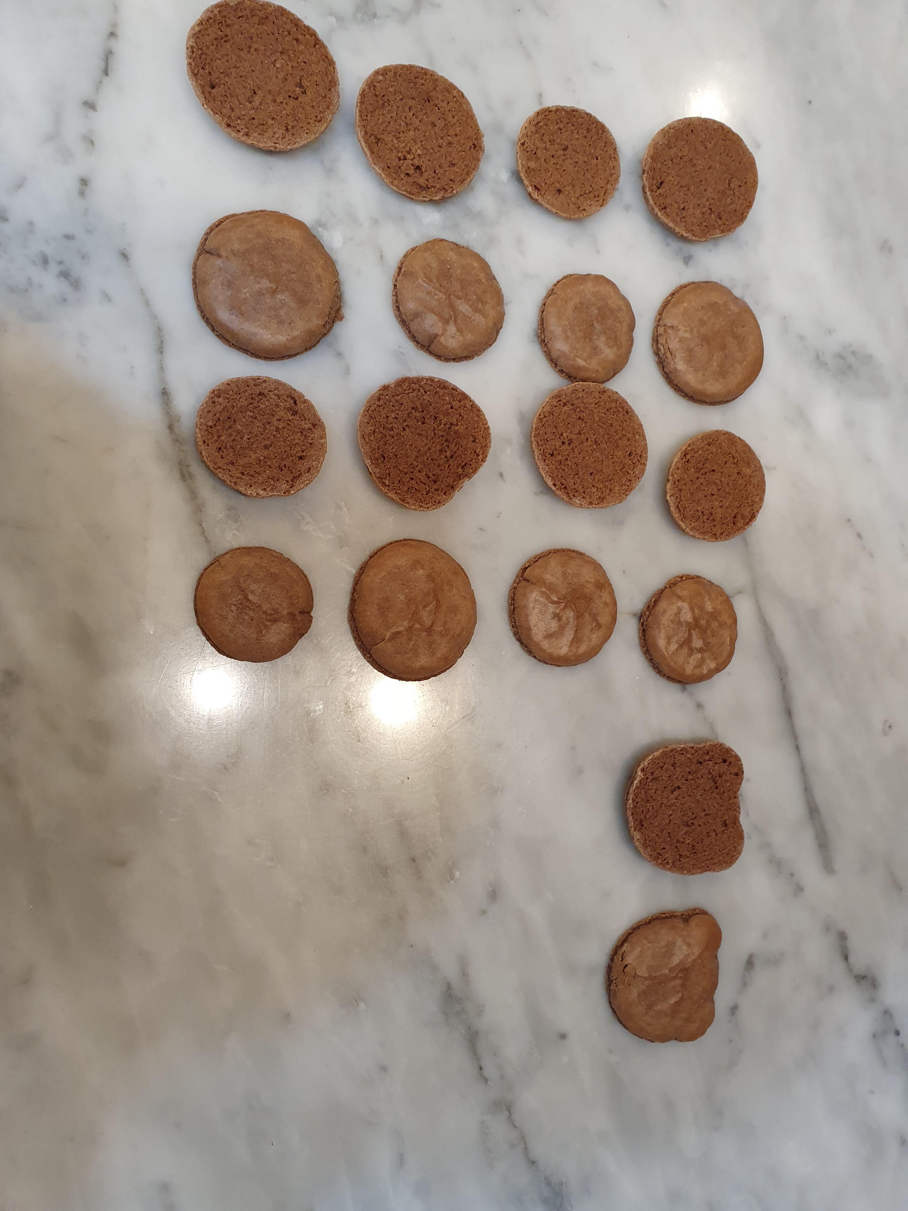 크기가 비슷한 애들끼리 짝을 맞추고, 필링을 짤 면을 뒤집어놓습니다.