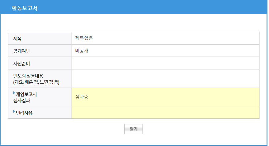 활동이 끝나면 활동보고서를 적어야 활동이 인정됩니다.