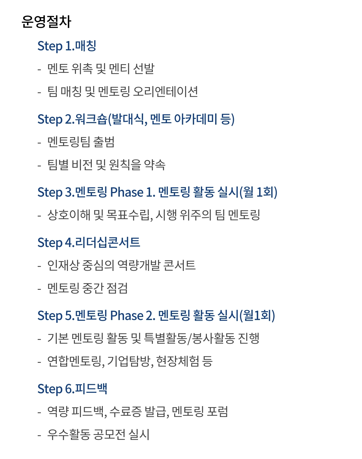 2. 발대식, 리더십콘서트 참석(불참 멘티는 기업탐방, 오픈 멘토링 등 대체 프로그램 참석)